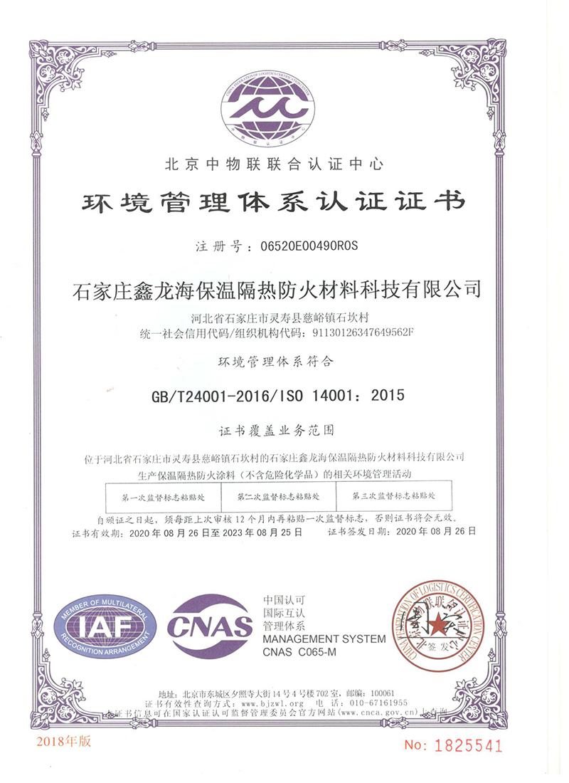 环境管理体系认证证书